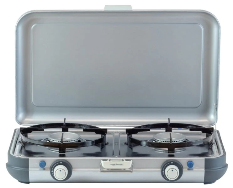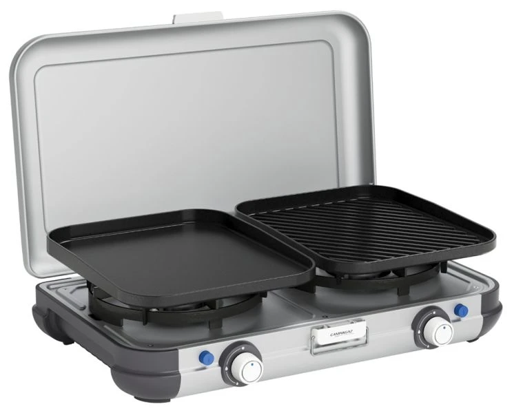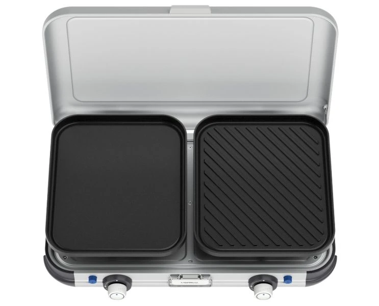 Campingaz’s Camping Kitchen 2 Grill & Go is a compact and versatile cooking & grilling companion. The 2 burner stove with interchangeable searing grids and plancha gives you the flexibility to support all food preparation needs.
