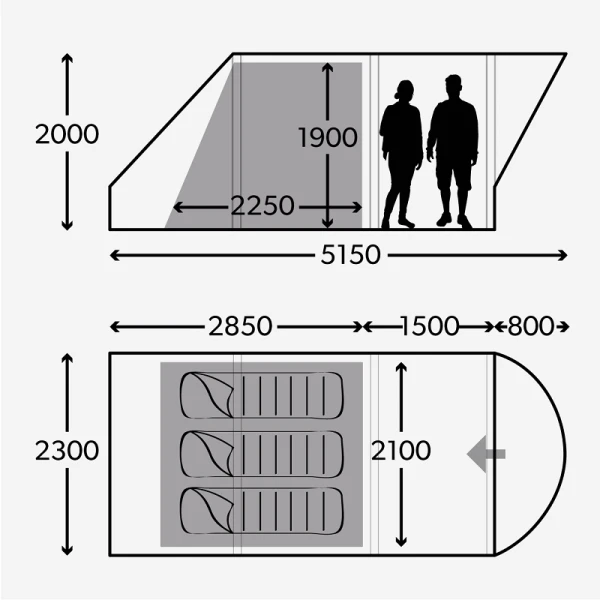 - Covered entrance – gives a sheltered entrance to your tent, which prevents rain from dripping into the living area