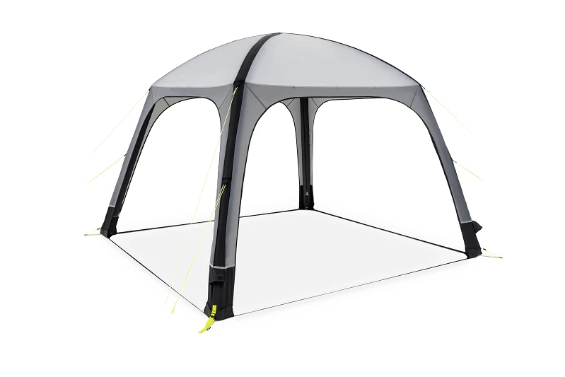 The AIR shelter is very quick to pitch, inflation is achieved in no time at all thanks to the supplied hand pump, simply peg the four corners and inflate from the two inflation points on the outside of the shelter. On the underside of the shelter, tensioning straps ensure a square shape is maintained whilst durable fluorescent guylines and supplied pegs keep the shelter stable.