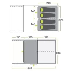 It sleeps up to 4 and offers a large living area, with a great view through panoramic windows. Very quick to set up, the Hayling 4 AIR is great for long or short stays and is ideal for touring. The bedrooms feature a storage tidy pockets (inside the inner) and as the toggled divider can be taken out you are able to make one large bedroom. The living room has a sewn-in groundsheet and a large door in the left-hand side with a mesh screen panel to keep the bugs out on warm days.