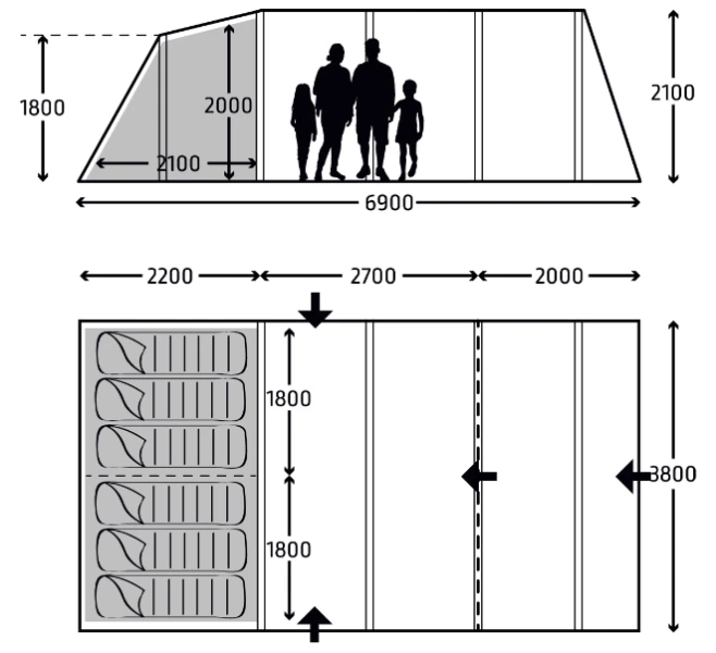 - Covered entrance – gives a sheltered entrance to your tent, which prevents rain from dripping into the living area