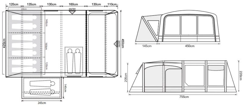 • Double Sized Air Storage Annexe & Bedroom Compartment