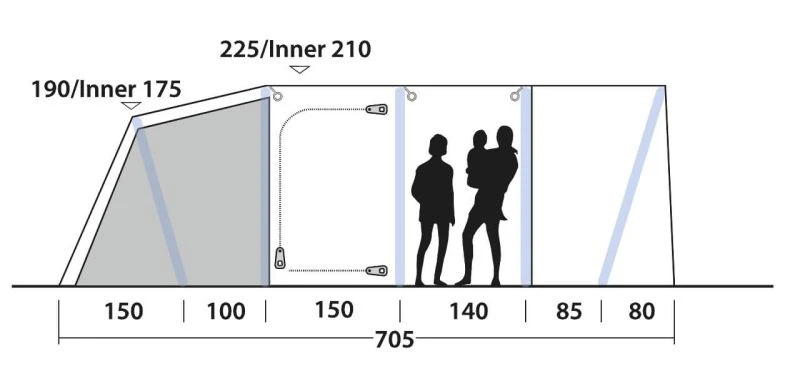 The Forestville sits in Outwell’s Superior Air collection and comes as standard with bracer beam for the roof to add rigidity. The Flysheet is made from a 150D fabric which also has ripstop running throughout to give the material the next level of robustness. This – complimented with a 6,000mm HH – makes it one of the better Polyester materials on the market. The whole tent is simple to pitch as seen from our Attwoolls Pitching video, merely peg the base out, pump the tent up and guy out the straps & lines. As the tent can be pitched within 12 minutes it makes it ideal for shorter trips as well as longer stays away.
