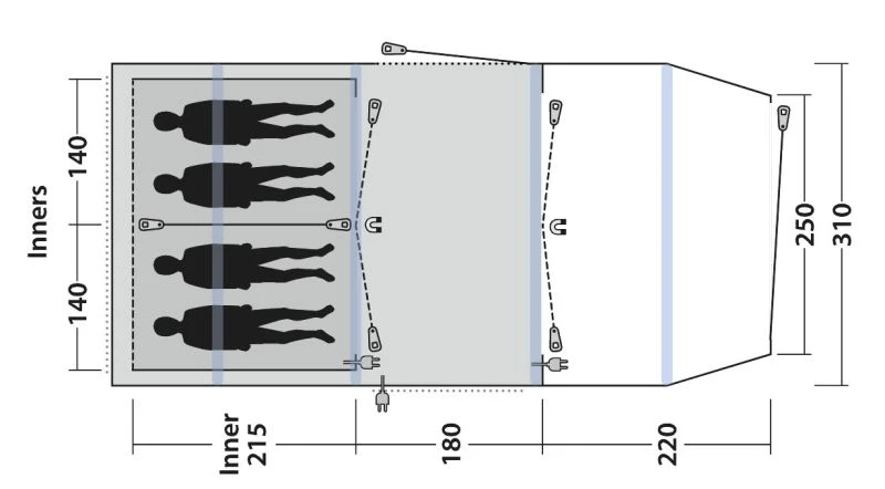 - Reliable, easy-to-operate inflate/deflate valves conveniently placed outside the flysheet