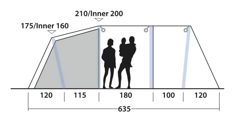 - Type of tent:Â Â Â Â Â Three-room tunnel tent