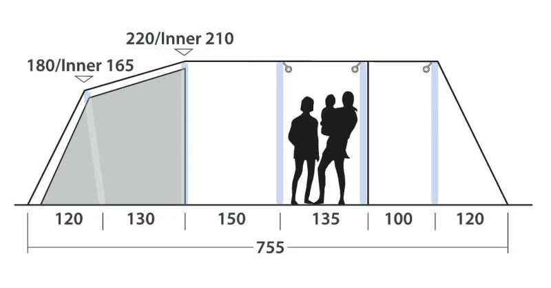 - Type of tent: Three room tunnel tent