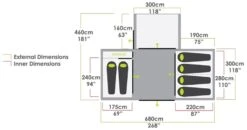 • Fully Sewn-in Oxford Groundsheet and Quick & Quiet Access Doors