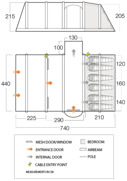 - High Cable Entry – Allows you to neatly run electrical cables out into the awning area at the front of the tent
