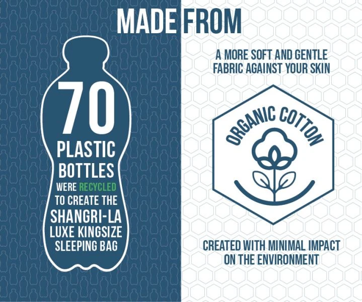 - Organic Polycotton Shell- Created using a mixture of recycled polyester and organic cotton to create a high quality, sustainable polycotton fabric. This shell fabric offers increased comfort, softness and a luxury home from home sleeping experience.