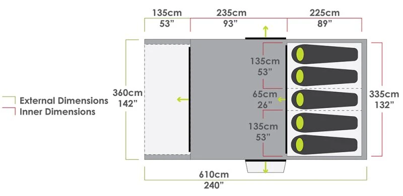 The latest version of the Zempire Aero Pro TL is like a completely different tent. Not only does the tent feel more spacious but it has better functionality and more versatility. We really think that it is the perfect size tent for those families who want the top level of spec, and a comfortable environment to enjoy during their camping holidays. The DNA of the Aero TL is still strong but by extending and raising the height in the canopy section it now becomes a much more usable space. This combined with a new open front really helps to bring the outside in. If you are still looking for that enclosed space, then you can add on the new Pro Awning Wall Set which simply zips on to the tent and includes not only a waterproof door with tinted windows but also a complete mesh wall as well. This wall set can still be gull-winged out like a canopy to provide additional protection against the elements.