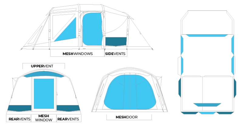- Configuration Features – Internal Living Area, Removable Inner, Bedroom Dividing Curtain