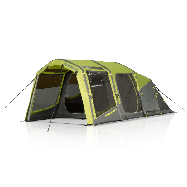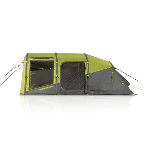 Zempire’s Sero-Link AirFrame System gives all of the structural strength of an Inflatable tent but without the bulk and weight. This is achieved by inventing a revolutionary new way of keeping the inflatable tubes in the tent. The open canopy on all of the Evo’s can be enclosed by purchasing the additional Front Awning Wall Kit. The kit is a black panel that has two side doors built into it, a full-frontal mesh door and some king poles. Both the front door and the mesh door can be attached at the same time giving the option to have the tent how you like it. The mesh door can be zipped on and left in place while the main door (which is in front of the mesh) can then be made into a Canopy (Gullwing Door) with the king poles included in the pack.